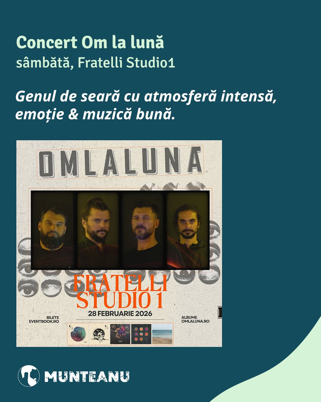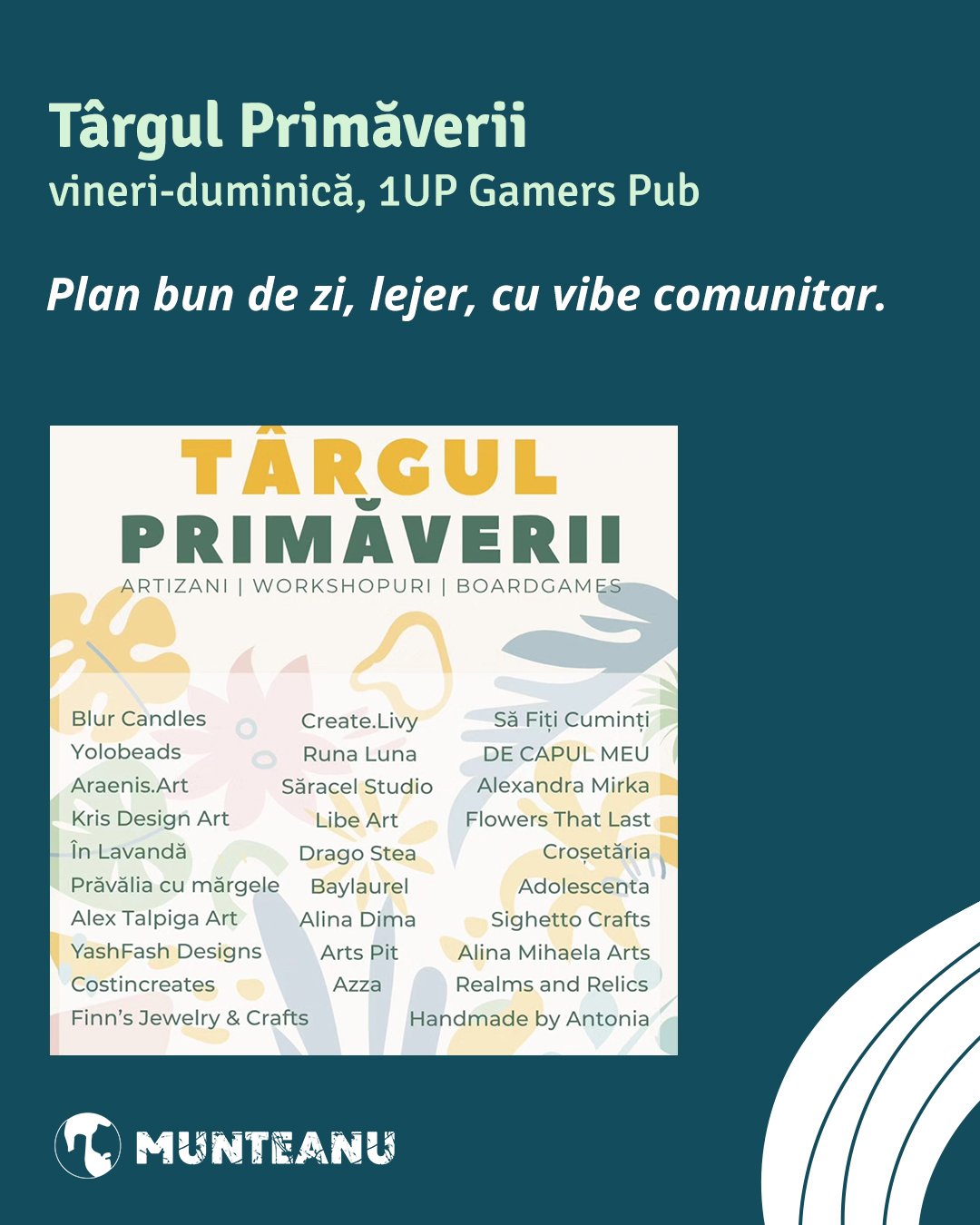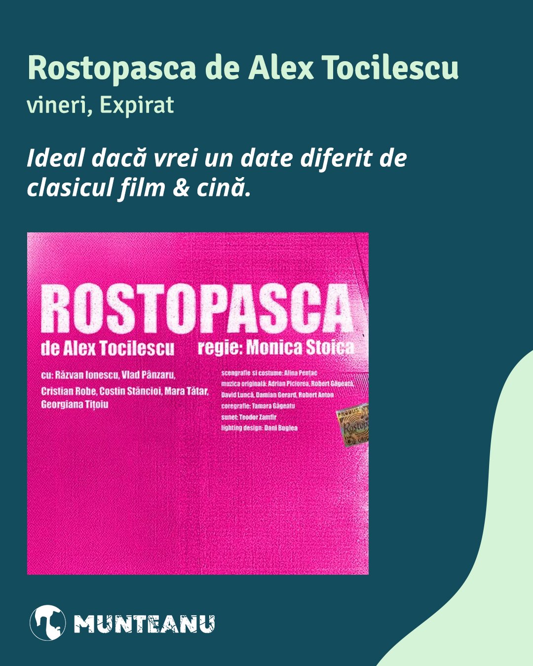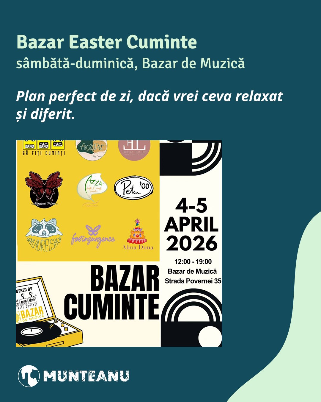Urmărește lista actualizată de recomandări: de la concerte, expoziții, spectacole de teatru ori proiecții de film și până la petreceri, festivaluri, spectacole de dans, tururi ghidate sau lansări de cărți.