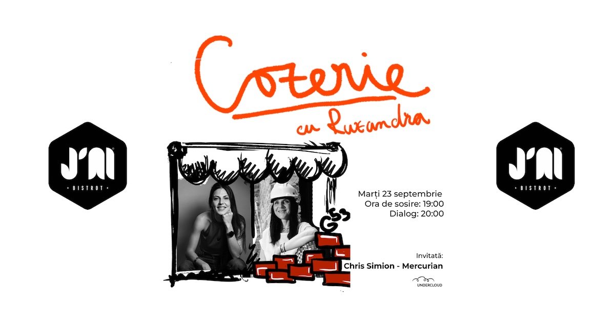 Marți, 23 septembrie este o zi pusă sub semnul muzicii, cu Cozerie, un eveniment care duce cu gândul la un podcast live, în care Ruxandra Păduraru, antropolog, asistent universitar și gazdă o va intervieva pe îndelete și în tihnă pe Chris Simion-Mercurian, pornind de la muzicile care i-au însoțit eforturile creative și viața în general, culminând cu un playlist selectat de invitată. Evenimentul va avea loc de la ora 19:00, la J’ai Bistrot pe terasă. Intrarea este liberă, dar numai pe bază de rezervare, iar doritorii se pot înscrie prin acest formular.