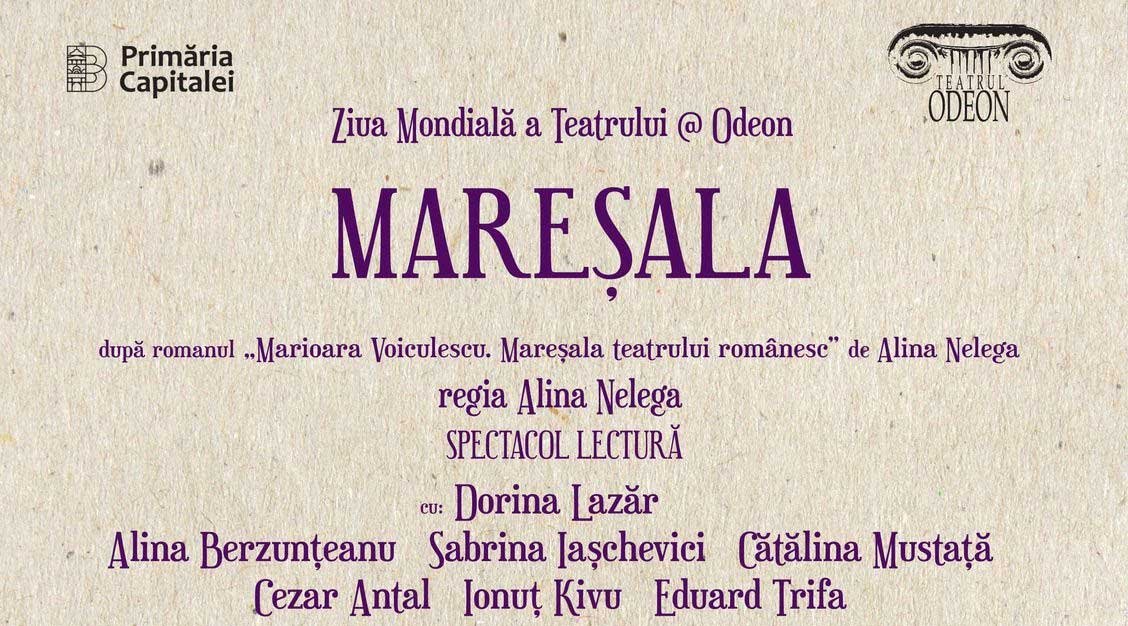 Luni, 27 martie, în Sala Studio, sărbătorim pentru al V-lea an la rând Ziua Mondială a Teatrului @ODEON și vă așteptăm la spectacolul lectură Mareșala.