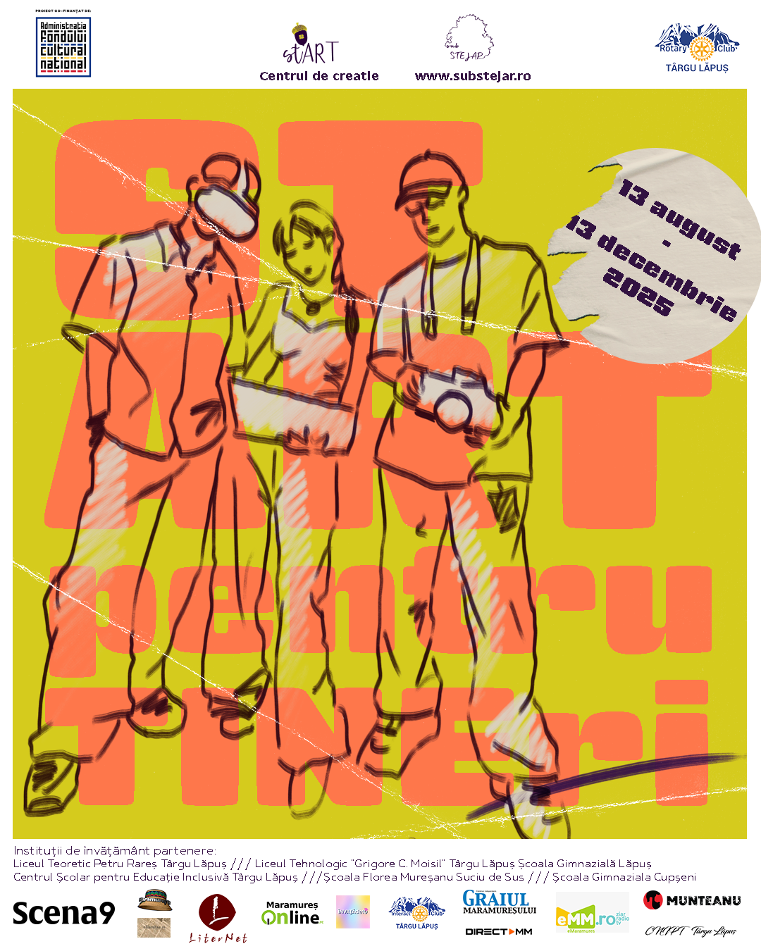 Proiectul START PENTRU TINEri este cofinanțat de AFCN, Asociația Sub Stejar și Rotary Club Târgu Lăpuș. Proiectul nu reprezintă în mod necesar poziția Administrației Fondului Cultural Național. AFCN nu este responsabil de conținutul proiectului sau de modul în care rezultatele proiectului pot fi folosite. Acestea sunt în întregime responsabilitatea beneficiarului finanțării